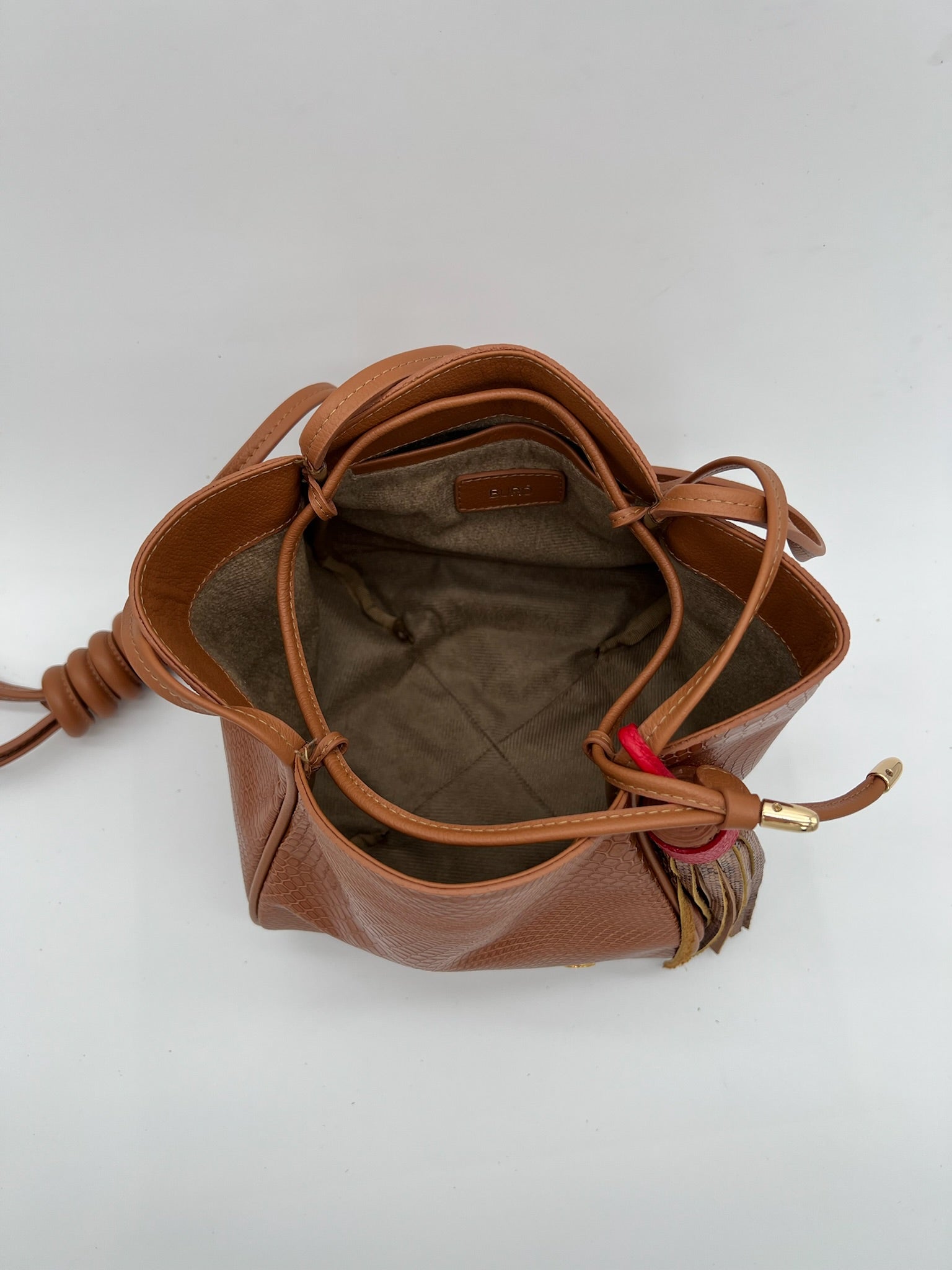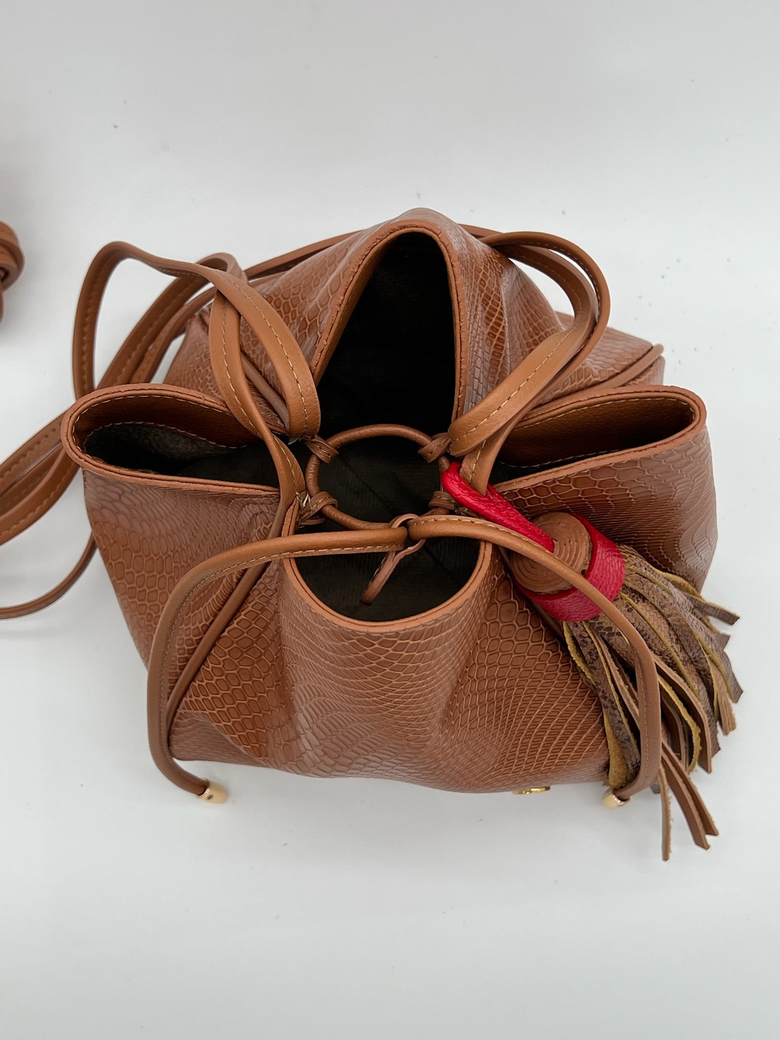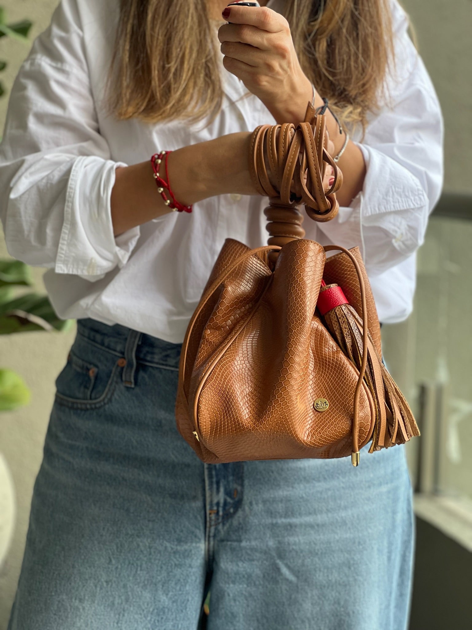 Nudo ajustable para cerrar y bolsillo interior.