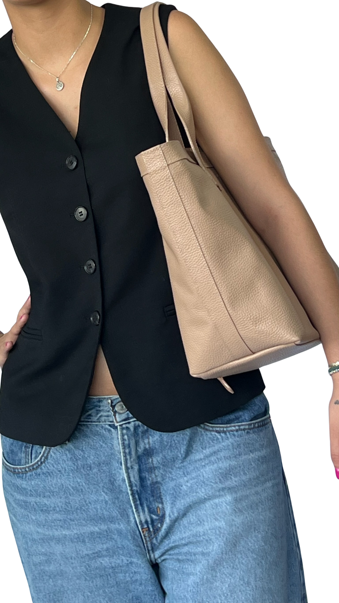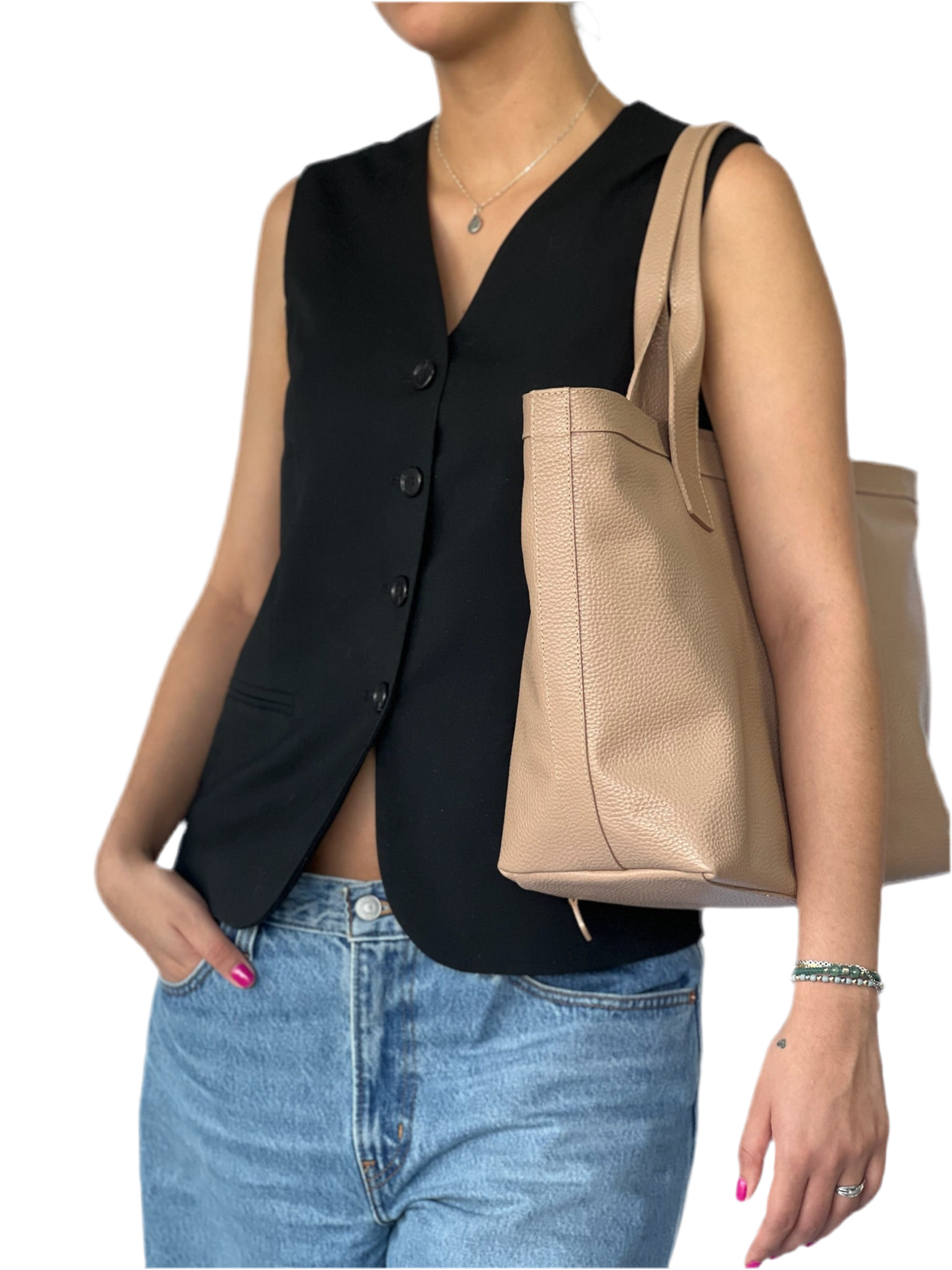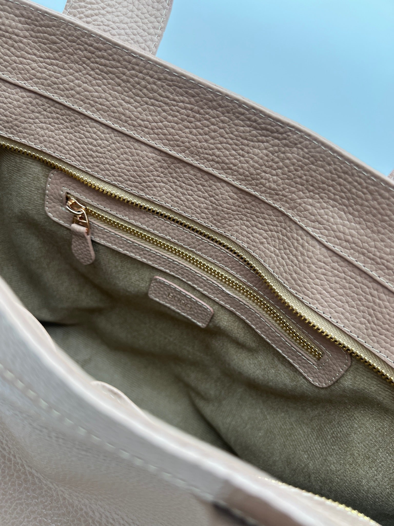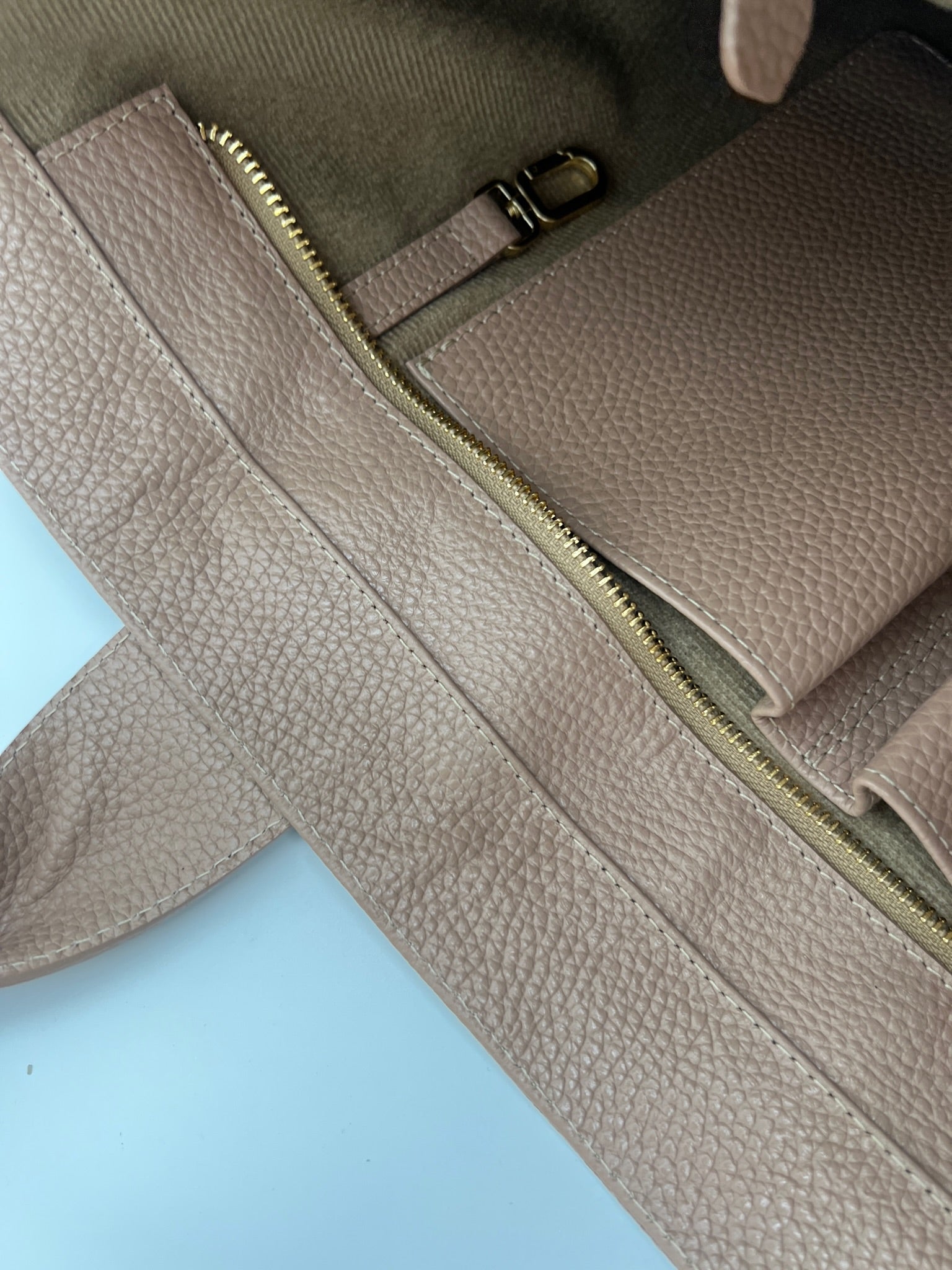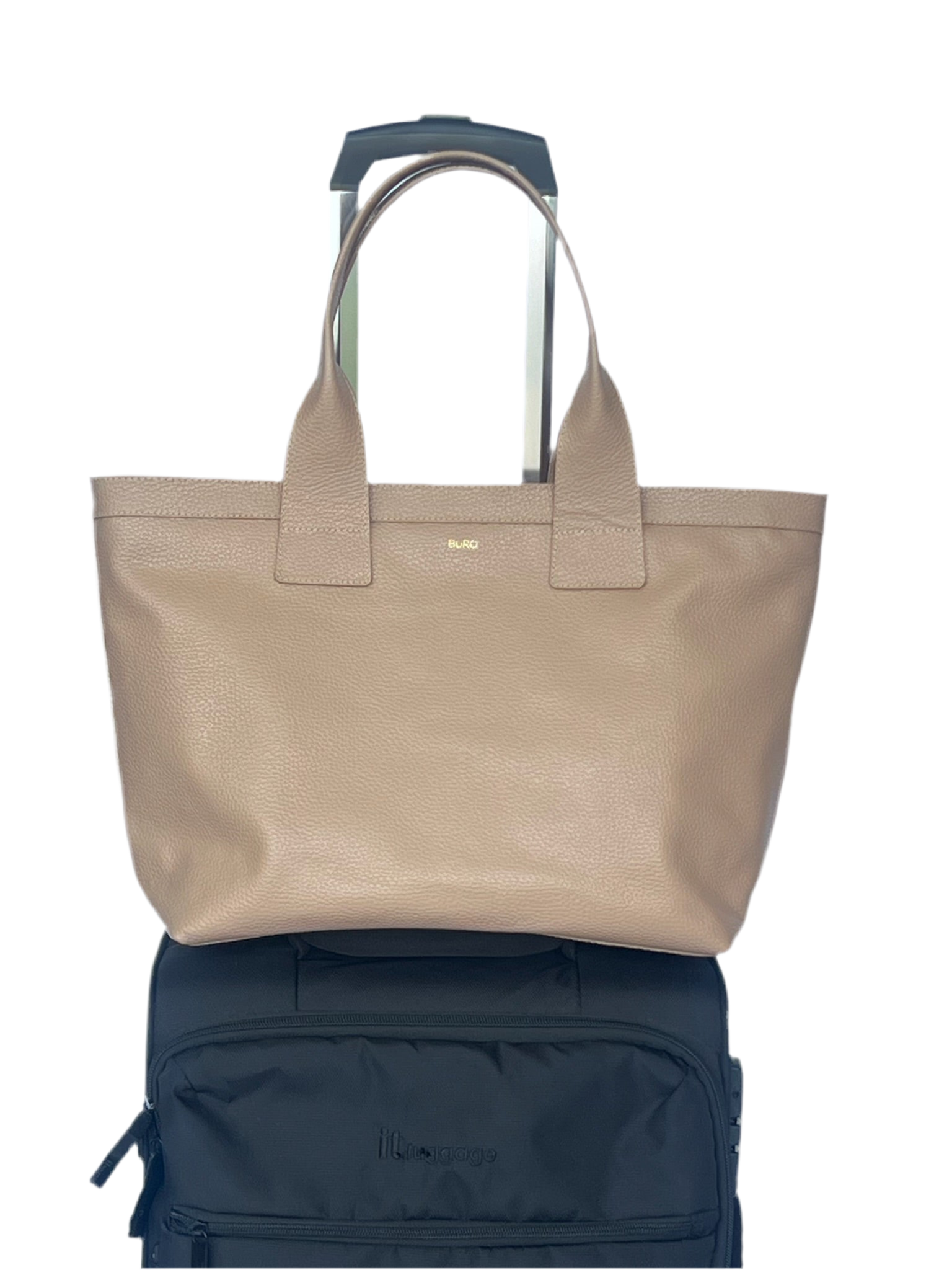 3 bolsillos internos (1 con cierre). Broche para llaves y bolsillo exterior con opción de soporte para maleta.